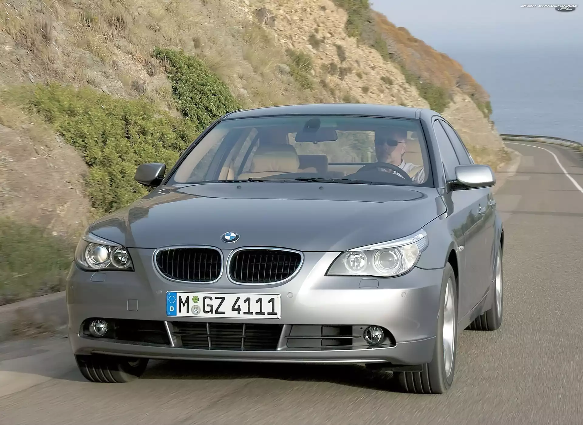 Droga, Góry, BMW 5, Srebrne, E60- Zdjęcia samochodów