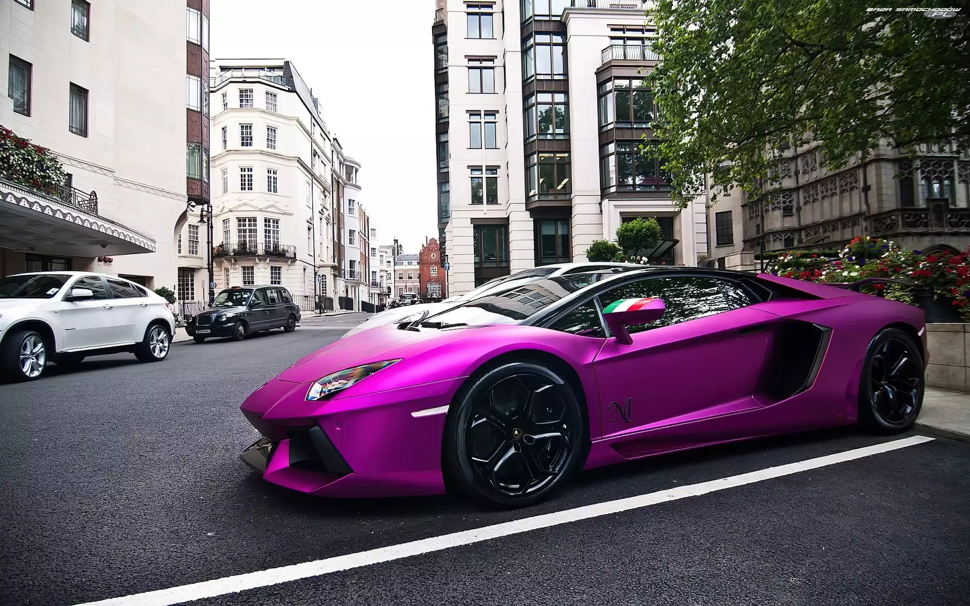 Samochód: Miasto, Purpurowe, Lamborghini Aventador